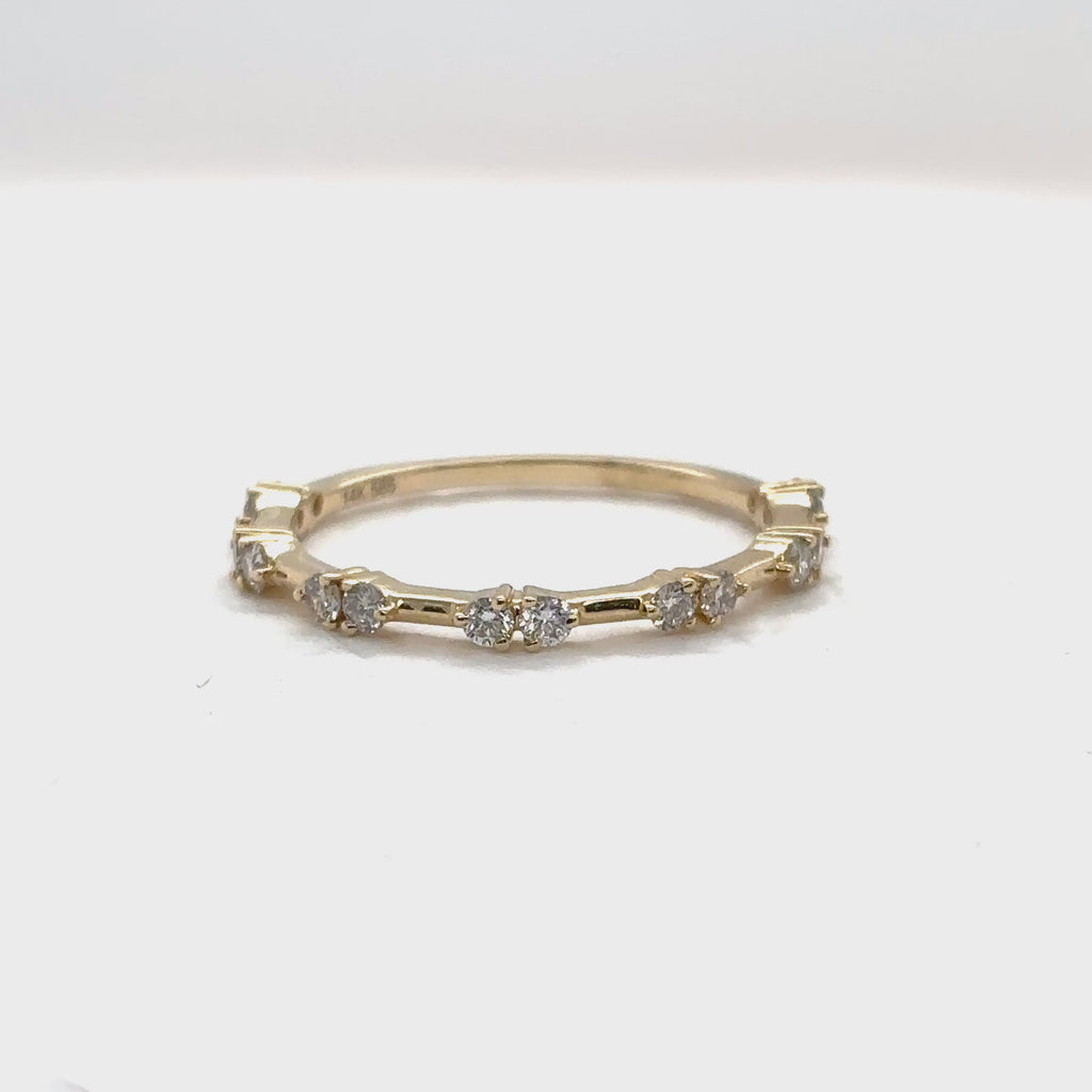 Celebrate with sparkle in this playful 14k yellow gold wedding band, featuring seven round diamonds spaced just right for 0.31ctw of GH SI1 brilliance.
