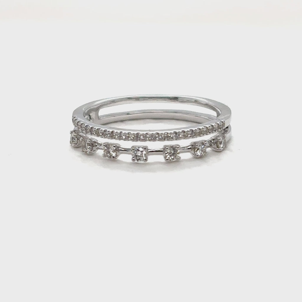 This charming 14k white gold band shines bright with two rows of diamonds, adding up to a sparkling 0.25 carats to jazz up any outfit!